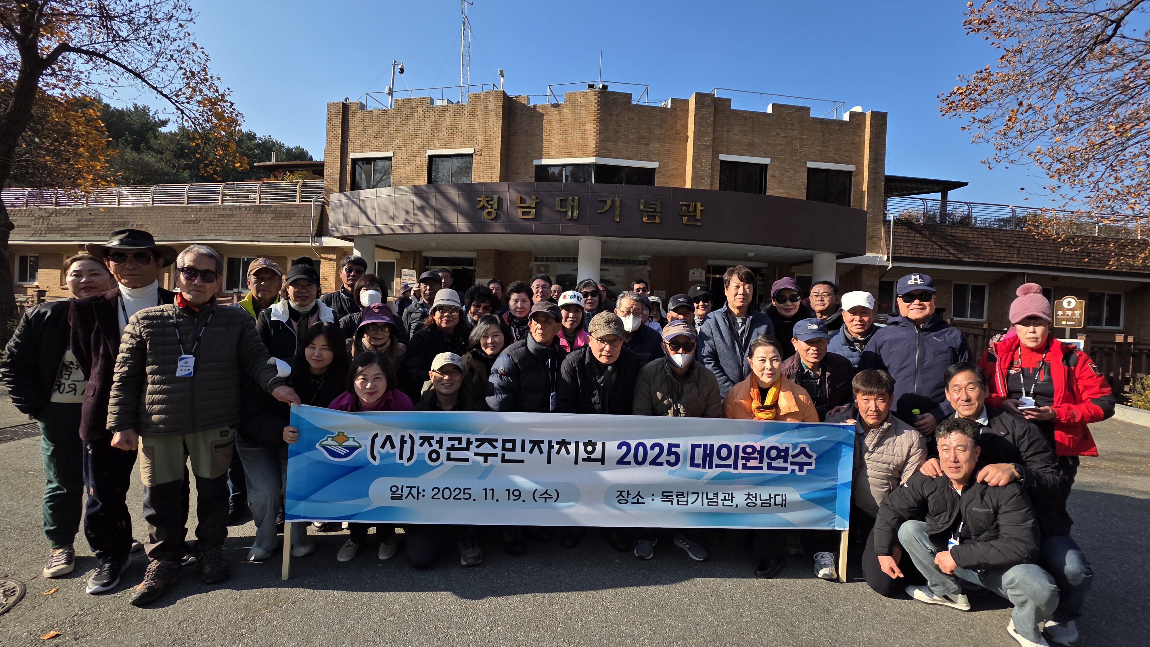 (사)정자회는 11월 19일 제8기 대의원들을 대상으로 대의원 연수를 다녀왔다. 이번 연수는 충남 천안의 독립기념관과 충북 청남대에서 이루어졌으며, 대의원들의 정체성 강화와 법인 운영의 전문성 제고를 목표로 마련됐다.