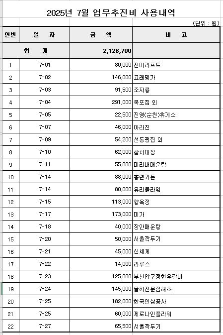 2025년 7월 업무추진비 공개