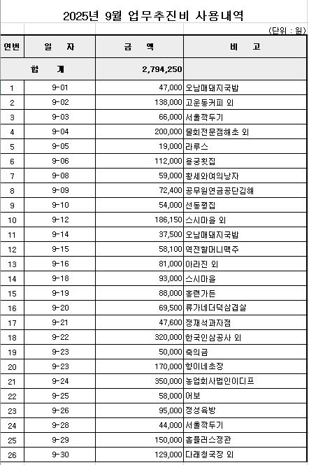 2025년 9월 업무추진비 공개