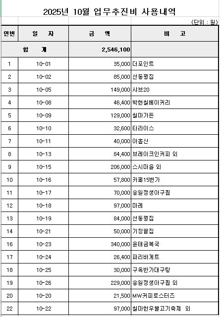 2025년 10월 업무추진비 공개