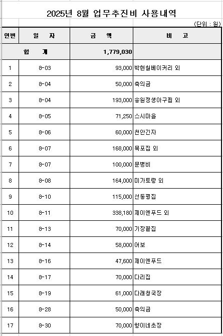 2025년 8월 업무추진비 공개