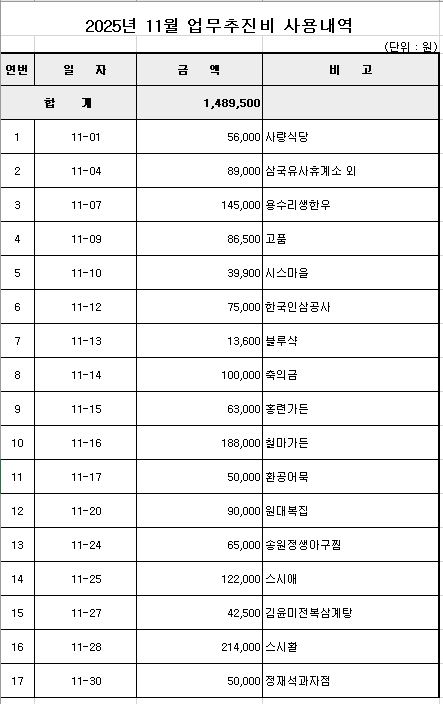 2025년 11월 업무추진비 공개