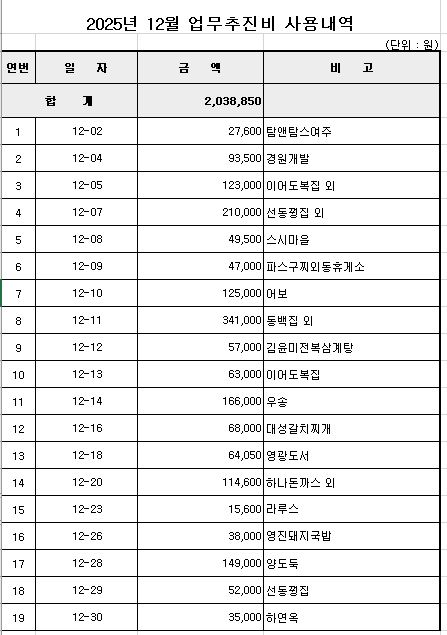 2025년 12월 업무추진비 공개