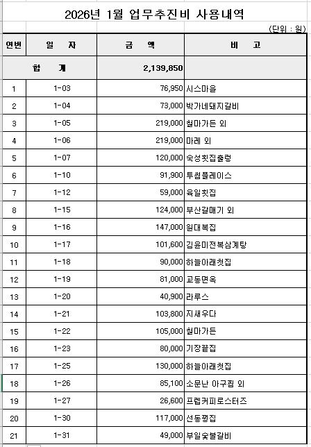 2026년 1월 업무추진비 공개